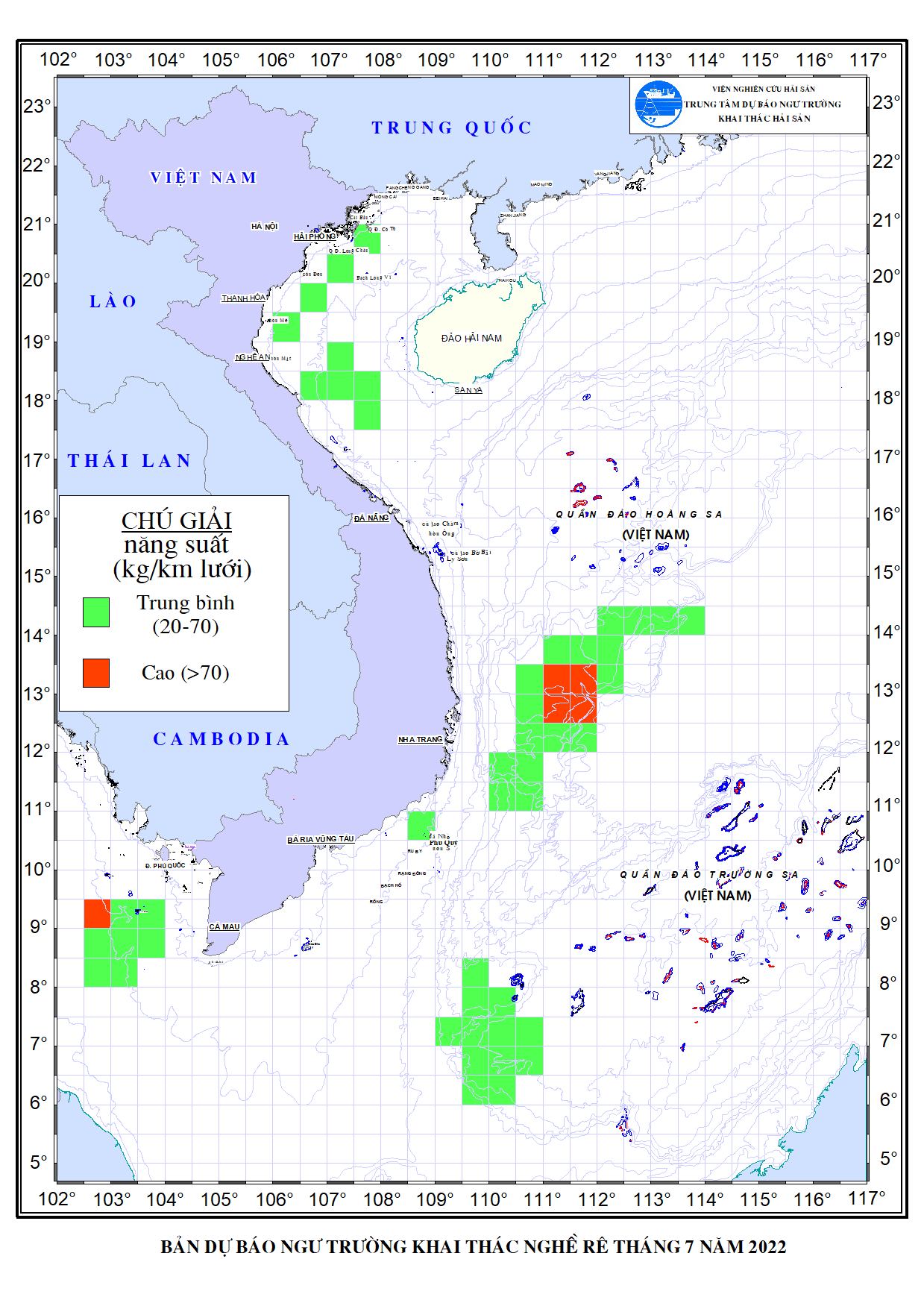 Trang nhất/ Dự báo khai thác theo nghề Dự báo ngư trường nghề lưới rê tháng 7/2022 Mùa vụ: Vụ Nam () | Năm dự báo: 2022 | Tháng dự báo: 07/2022 Nghề: Rê Cơ quan dự báo: Trung tâm Dự báo ngư trường Khai thác hải sản