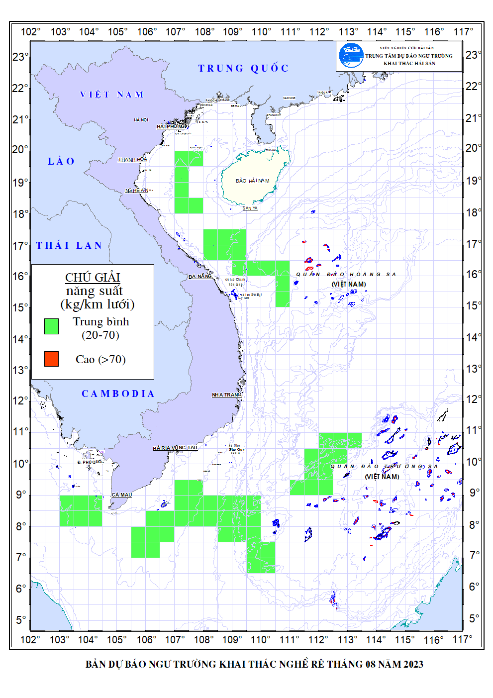 Trang nhất/ Dự báo khai thác theo nghề Dự báo ngư trường nghề lưới rê tháng 8/2023 Mùa vụ: Vụ Nam () | Năm dự báo: 2023 | Tháng dự báo: 08/2023 Nghề: Rê Cơ quan dự báo: Trung tâm Dự báo ngư trường Khai thác hải sản