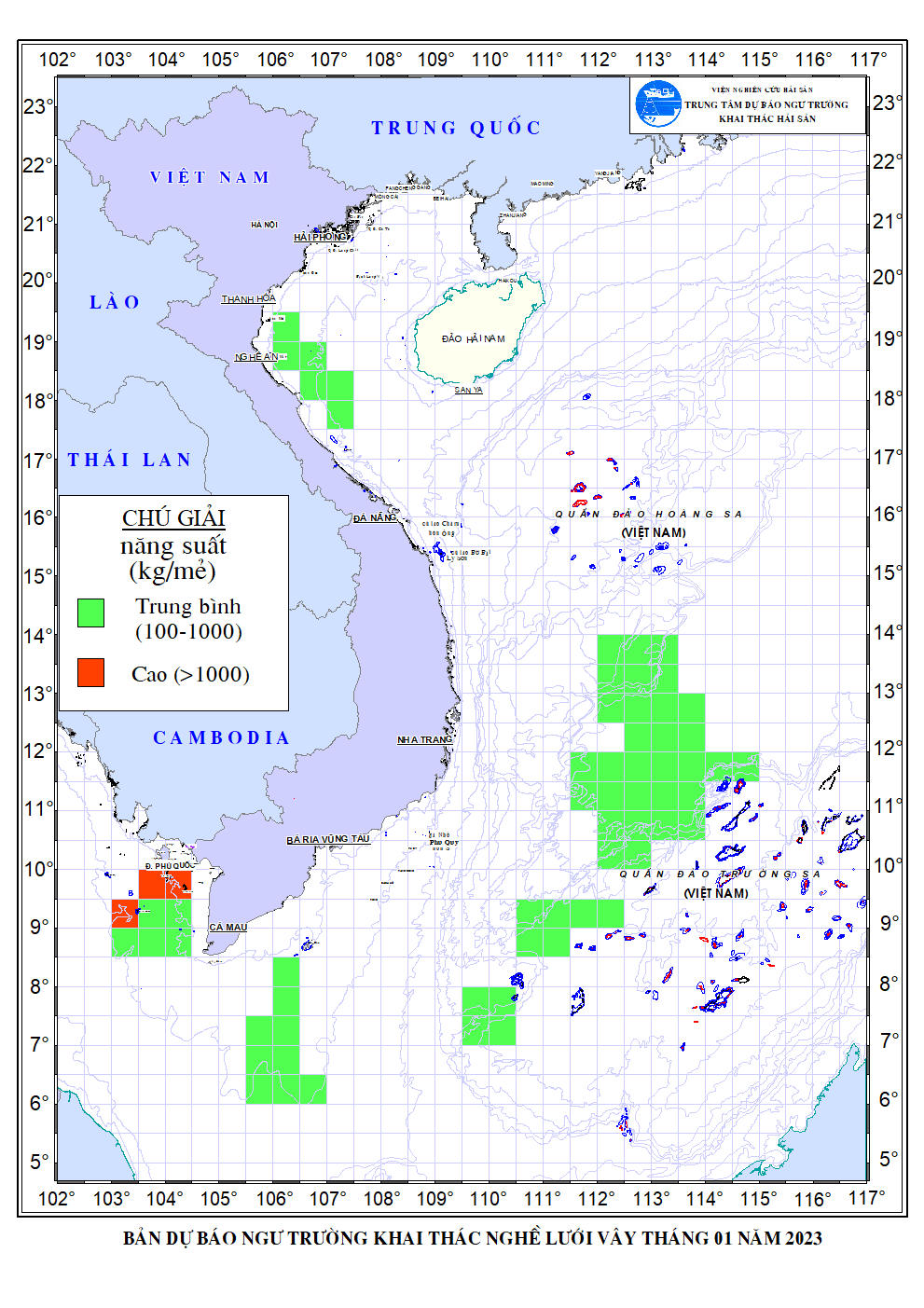 Trang nhất/ Dự báo khai thác theo nghề Dự báo ngư trường nghề lưới vây tháng 01/2023 Mùa vụ: Vụ Bắc () | Năm dự báo: 2023 | Tháng dự báo: 01/2023 Nghề: Vây Cơ quan dự báo: Trung tâm Dự báo ngư trường Khai thác hải sản