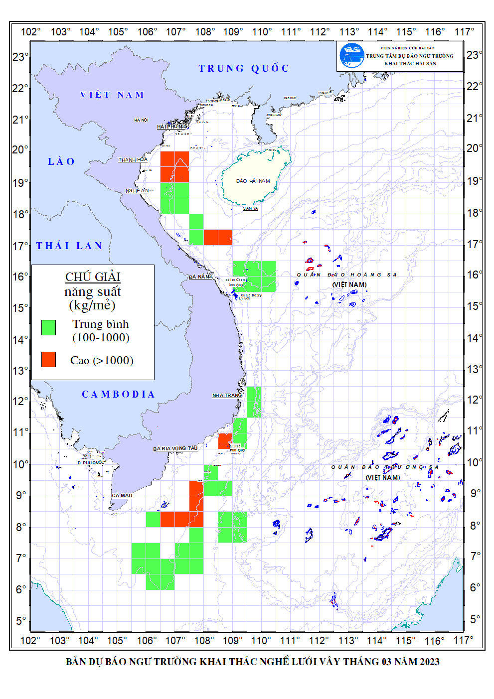 Trang nhất/ Dự báo khai thác theo nghề Dự báo ngư trường nghề lưới vây tháng 3/2023 Mùa vụ: Vụ Bắc () | Năm dự báo: 2023 | Tháng dự báo: 03/2023 Nghề: Câu cá ngừ đại dương Cơ quan dự báo: Trung tâm Dự báo ngư trường Khai thác hải sản