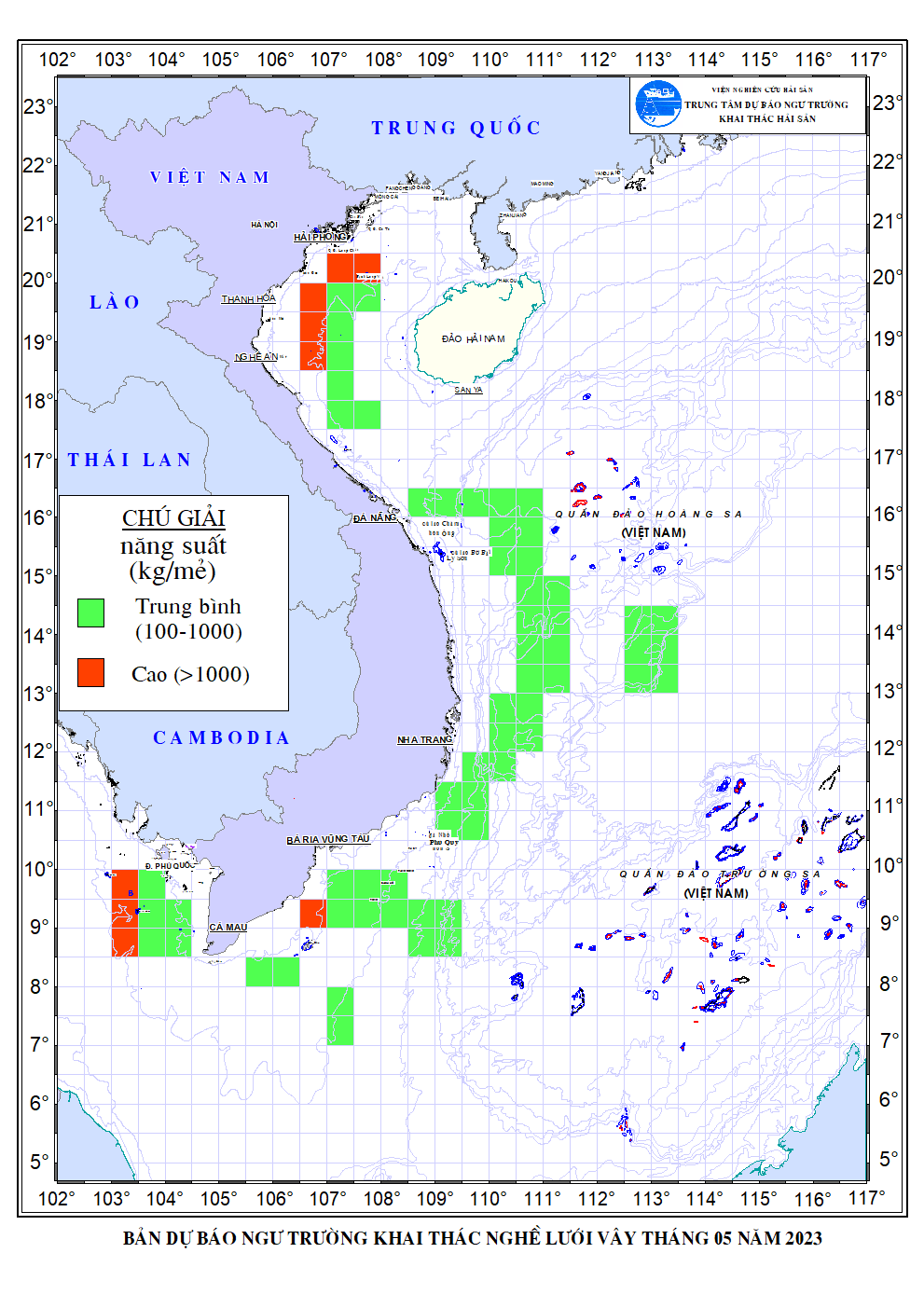 Trang nhất/ Dự báo khai thác theo nghề Dự báo ngư trường nghề lưới vây tháng 5/2023 Mùa vụ: Vụ Nam () | Năm dự báo: 2023 | Tháng dự báo: 05/2023 Nghề: Vây Cơ quan dự báo: Trung tâm Dự báo ngư trường Khai thác hải sản
