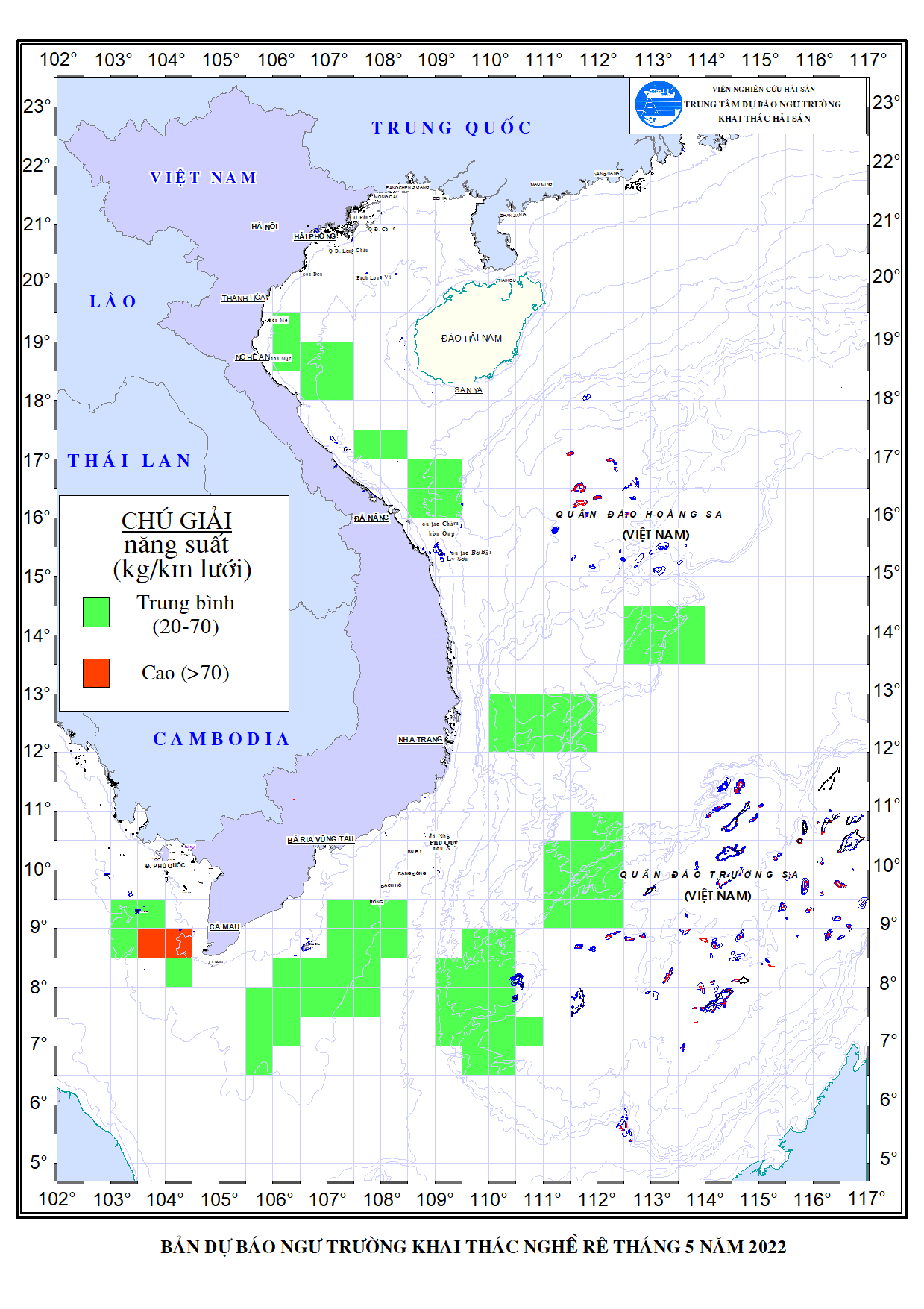 Trang nhất/ Dự báo khai thác theo nghề Dự báo ngư trường nghề rê tháng 5/2022 Mùa vụ: Vụ Nam () | Năm dự báo: 2022 | Tháng dự báo: 05/2022 Nghề: Rê Cơ quan dự báo: Trung tâm Dự báo ngư trường Khai thác hải sản