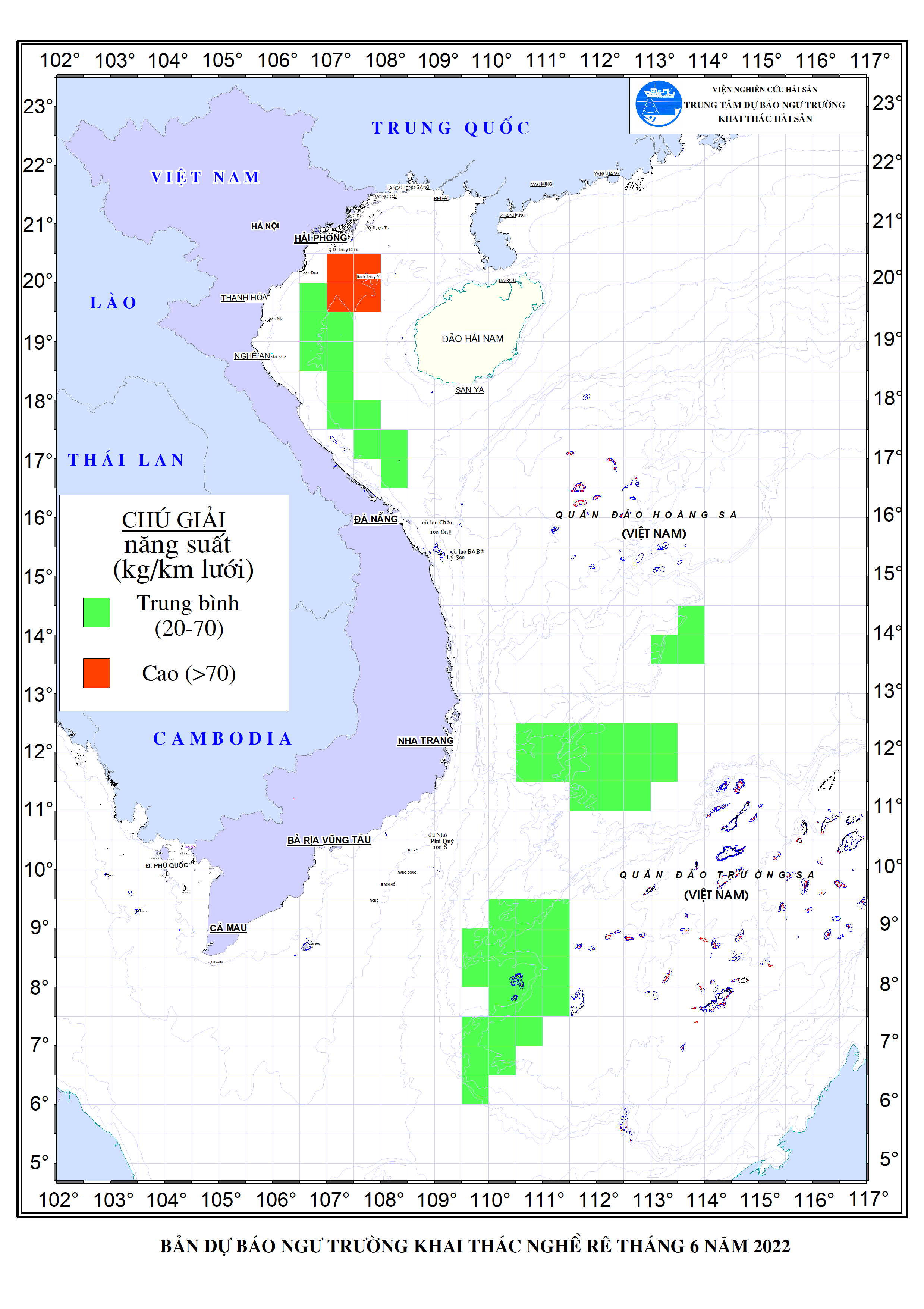 Trang nhất/ Dự báo khai thác theo nghề Dự báo ngư trường nghề rê tháng 6/2022 Mùa vụ: Vụ Nam () | Năm dự báo: 2022 | Tháng dự báo: 06/2022 Nghề: Rê Cơ quan dự báo: Trung tâm Dự báo ngư trường Khai thác hải sản