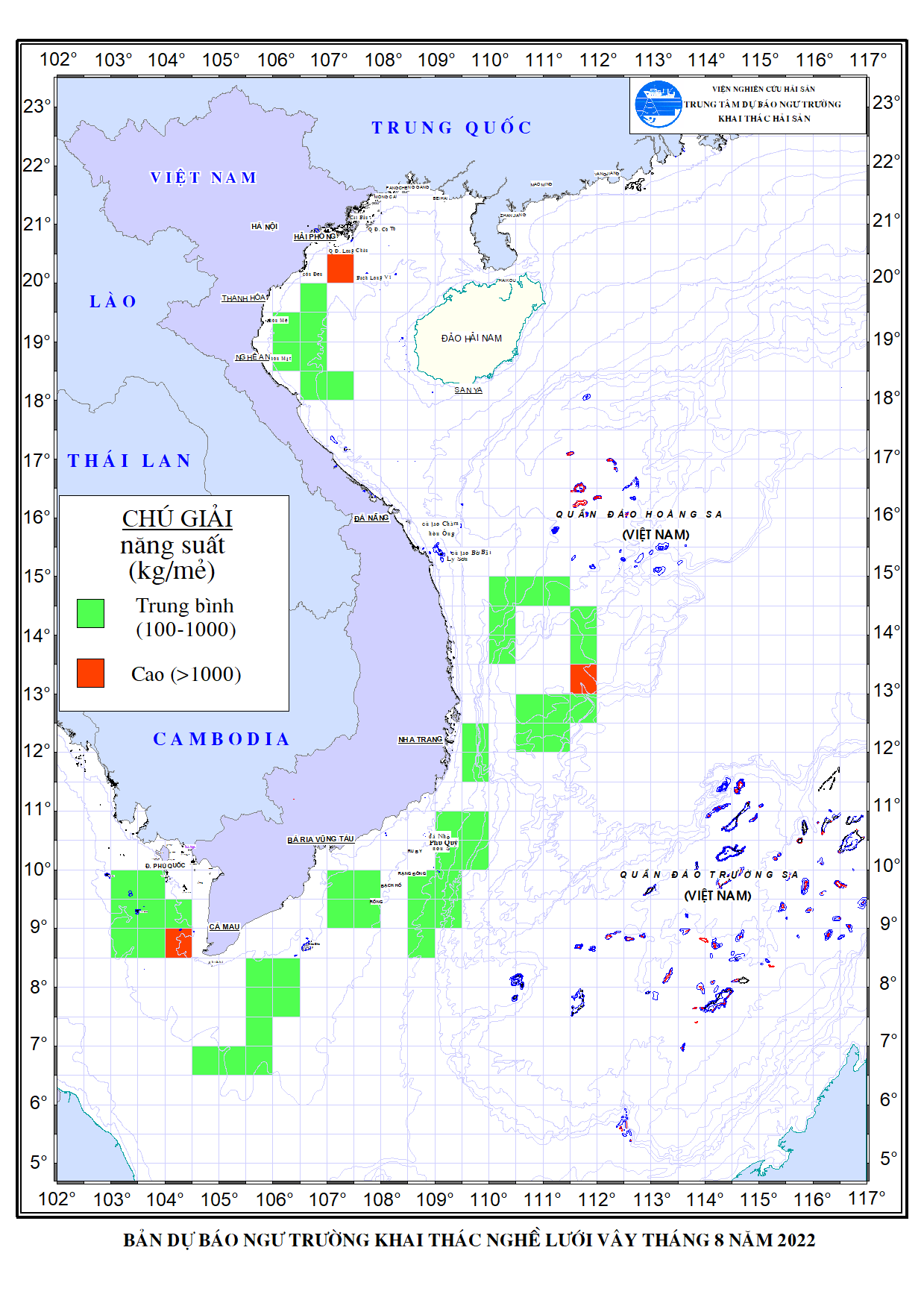 Trang nhất/ Dự báo khai thác theo nghề Dự báo ngư trường nghề vây tháng 8/2022 Mùa vụ: Vụ Nam () | Năm dự báo: 2022 | Tháng dự báo: 08/2022 Nghề: Vây Cơ quan dự báo: Trung tâm Dự báo ngư trường Khai thác hải sản