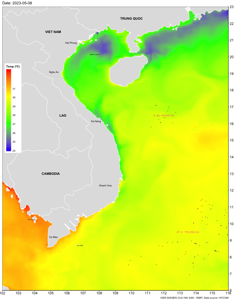 Trang nhất/ Dự báo khai thác theo đối tượng Dự báo nhiệt độ tầng mặt nước biển từ 08-15/6/2023 Mùa vụ: Vụ Nam () | Năm dự báo: 2023 | Tháng dự báo: 05/2023 Đối tượng dự báo: Trường nhiệt độ nước biển mặt Cơ quan dự báo: Trung tâm Dự báo ngư trường Khai thác hải sản