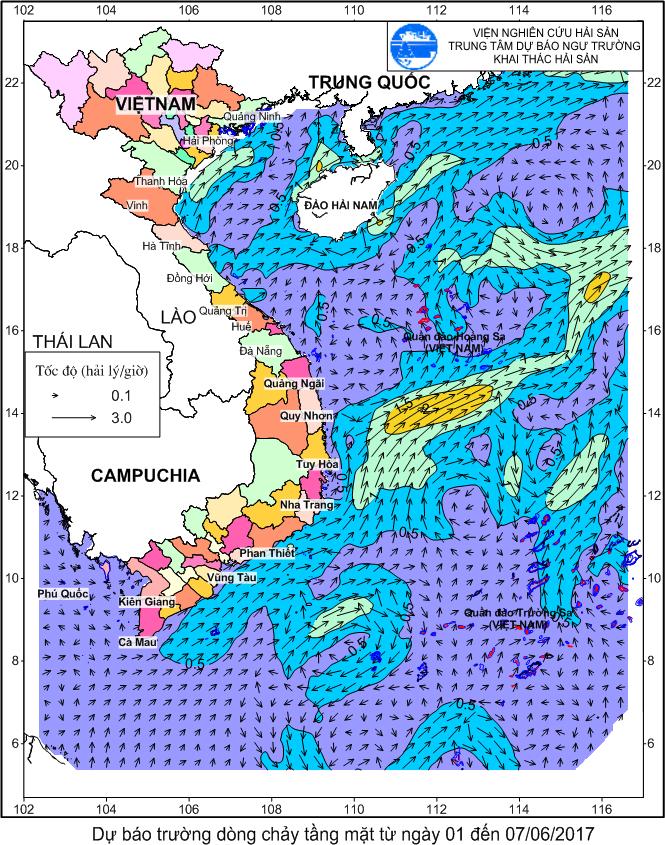 Dự báo trường dòng chảy tầng mặt từ ngày 01 đến 07/6/2017