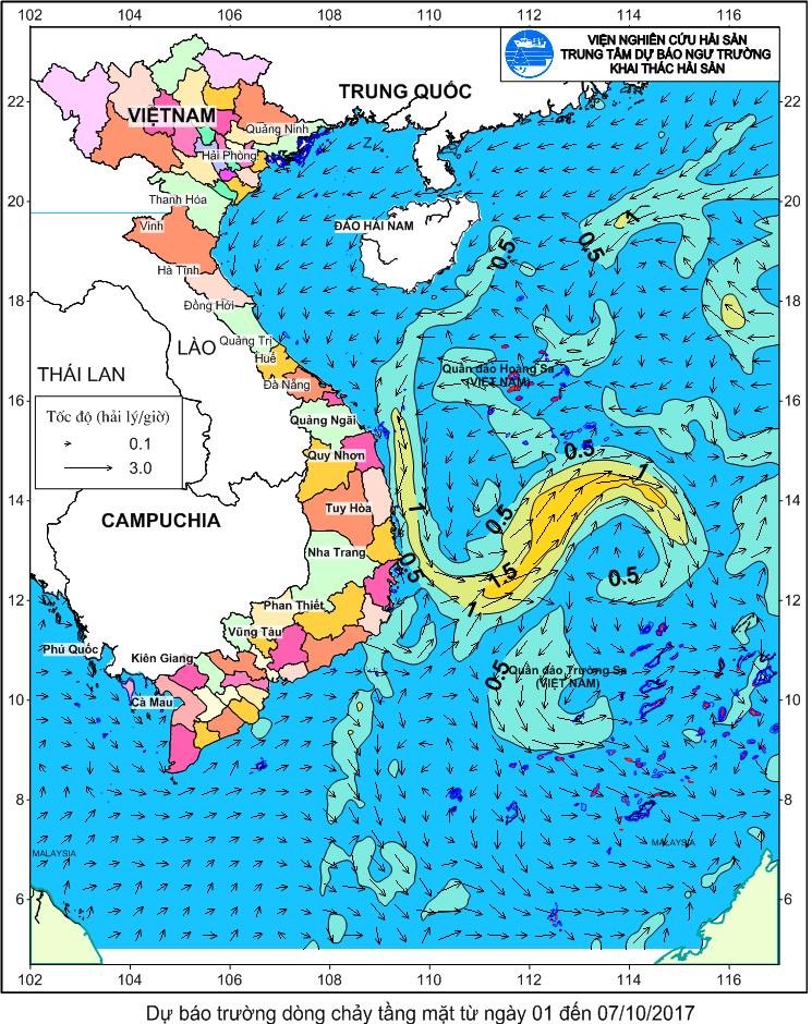 Dự báo trường dòng chảy tầng mặt từ ngày 01-07/10/2017