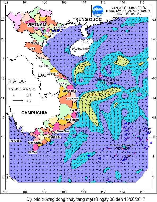 Dự báo trường dòng chảy tầng mặt từ ngày 08 đến 15/6/2017
