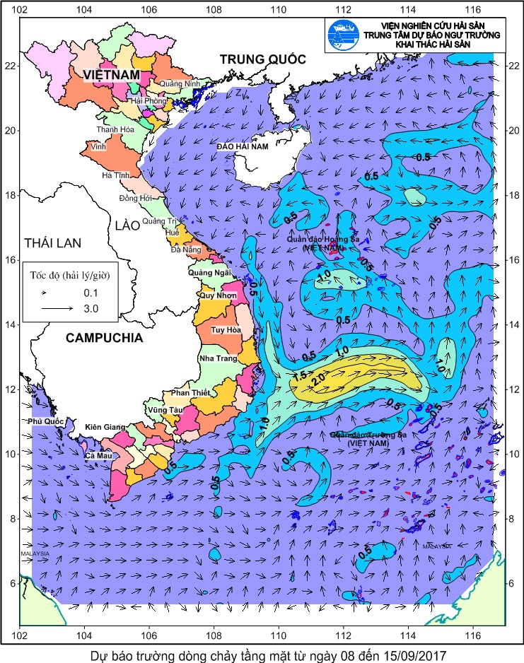 Dự báo trường dòng chảy tầng mặt từ ngày 08-15/09/2017
