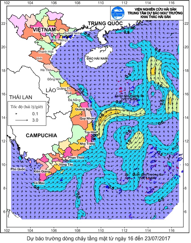 Mùa vụ: Vụ Nam (DB trường dòng chảy tầng mặt từ ngày 16 đến 23/7/2017) | Năm dự báo: 2017 | Tháng dự báo: 07/2017