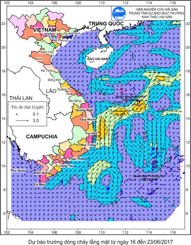 Dự báo trường dòng chảy tầng mặt từ ngày 18 đến 23/6/2017