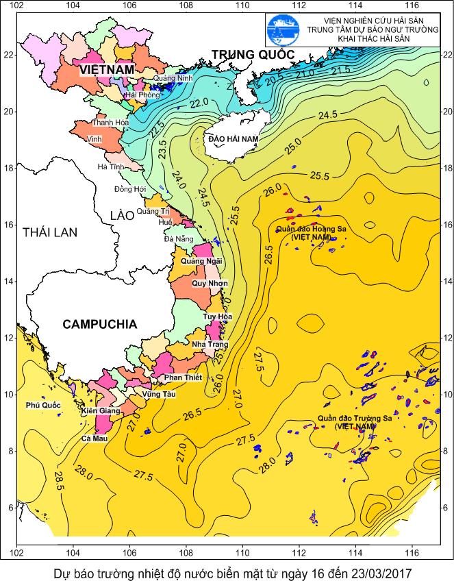 Mùa vụ: Vụ Nam (DB trường nhiệt độ mặt nước biển từ 16-23/3/2017) | Năm dự báo: 2017 | Tháng dự báo: 03/2017
