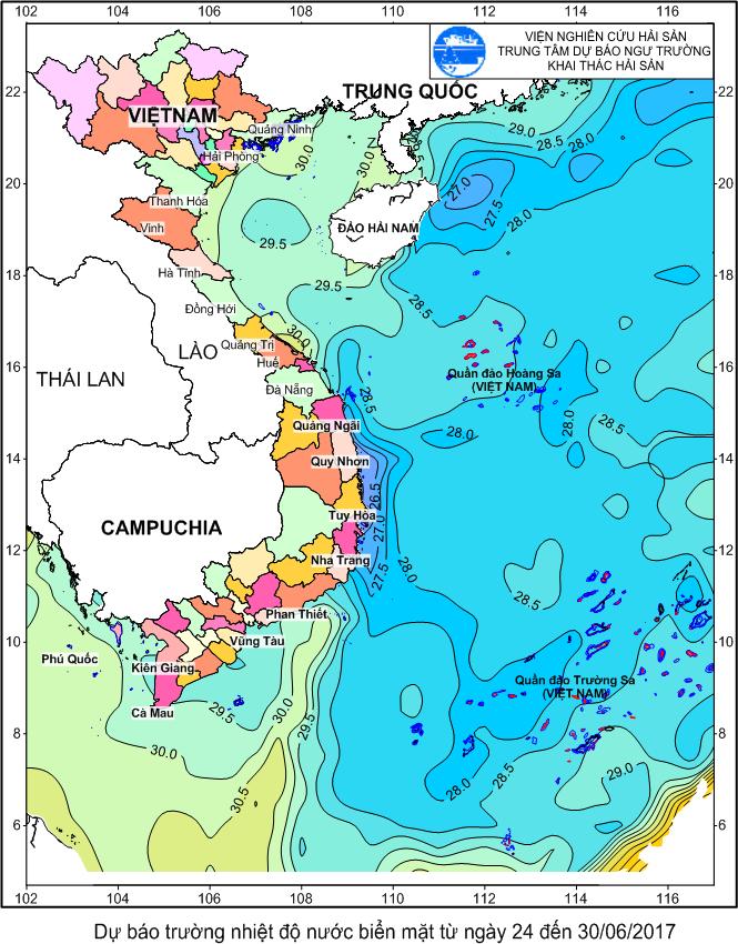 Mùa vụ: Vụ Nam (DB trường nhiệt độ mặt nước biển từ 24-30/6/2017) | Năm dự báo: 2017 | Tháng dự báo: 06/2017