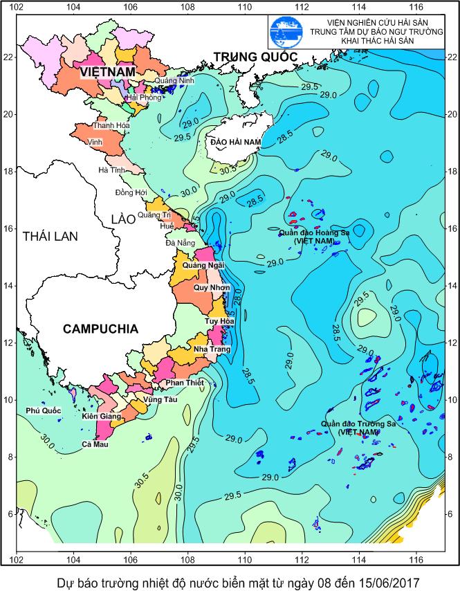Mùa vụ: Vụ Nam (DB trường nhiệt độ nước biển mặt từ ngày 08 đến 15/6/2017) | Năm dự báo: 2017 | Tháng dự báo: 06/2017