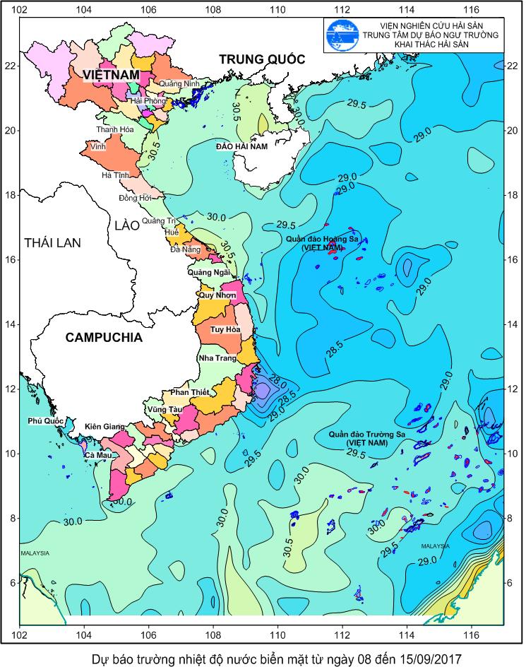 Dự báo trường nhiệt độ nước biển mặt từ ngày 08-15/09/2017